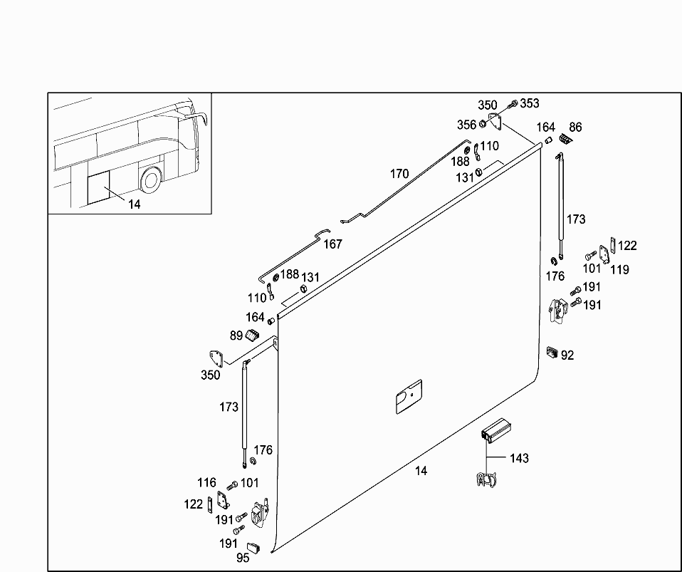 Introducere »AUTOCARE»MERCEDES BENZ TOURISMO RHD 15»Caroserie Tourismo RHD15 » Oblon bagaje inferior dreapta mijloc Mercedes Tourismo (poz.14)