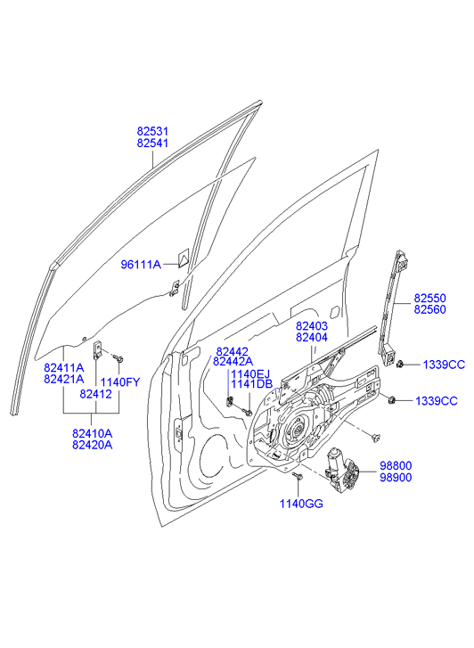 Introducere »HYUNDAI»Tucson (JM) 4X4»Caroserie Hyundai Tucson (JM) » Macara geam usa fata FARA MOTOR Hyundai Tucson