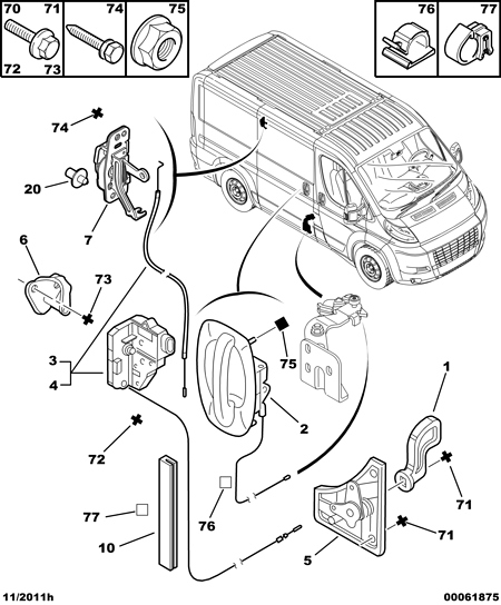 Introducere »VEHICULE COMERCIALE»PEUGEOT BOXER DUPA 2006»Caroserie Peugeot Boxer Bus » Maner exterior usa culisanta dreapta Peugeot Boxer cu cablu (poz.2)