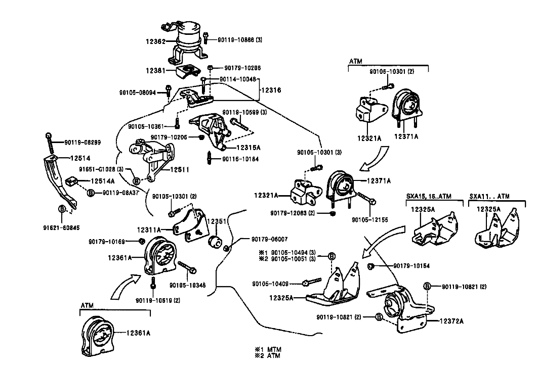 Introducere »VEHICULE OFF-ROAD 4x4»Toyota Rav 4 I (SXA1_)»Suspensie,directie » Suport motor Rav 4 I (poz.12371A)